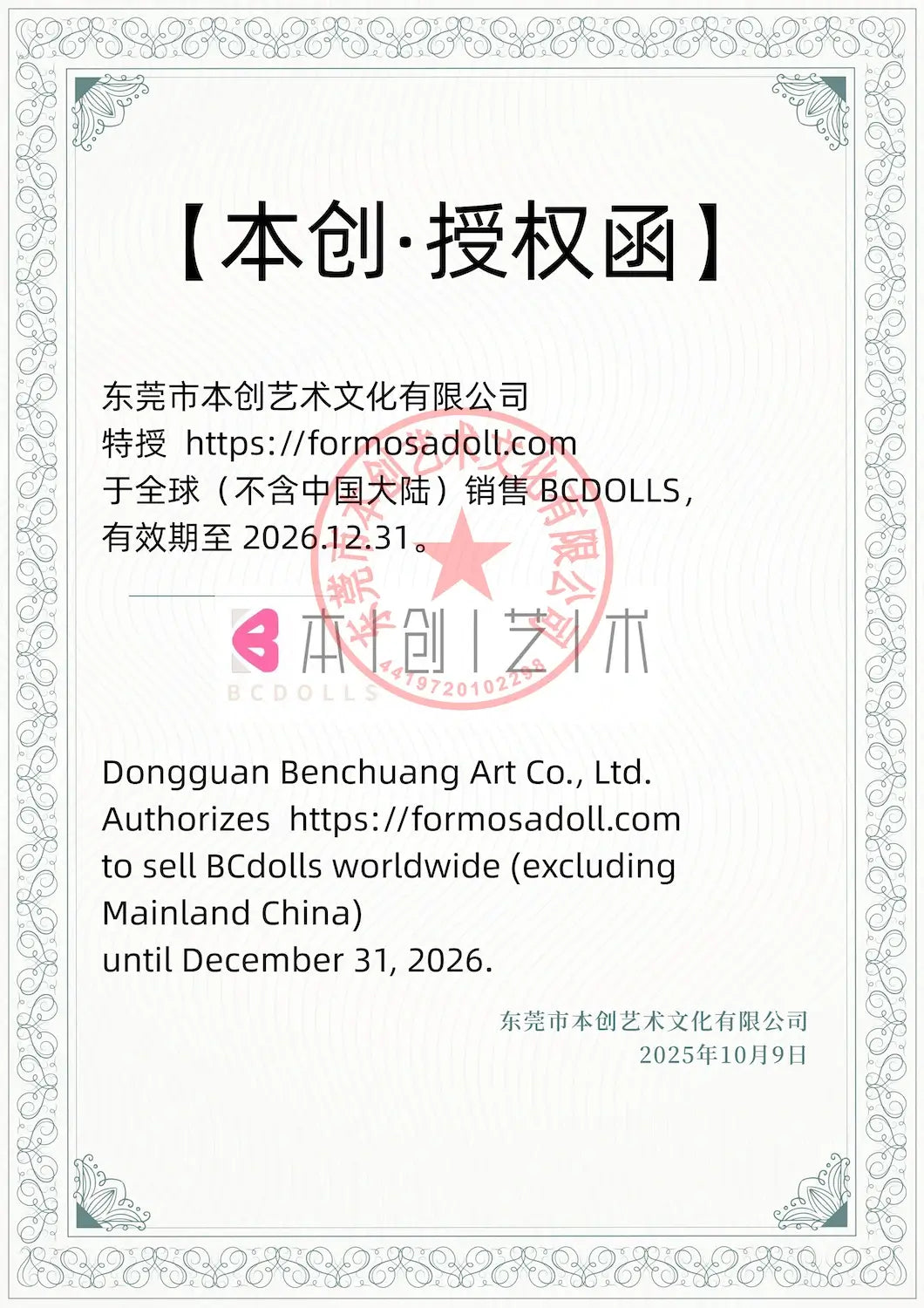 Formosa Doll is an authorised retailer — you’ll find the official certificate from the manufacturer displayed on the bottom of the product page and in our Official Distributor Certificates section.