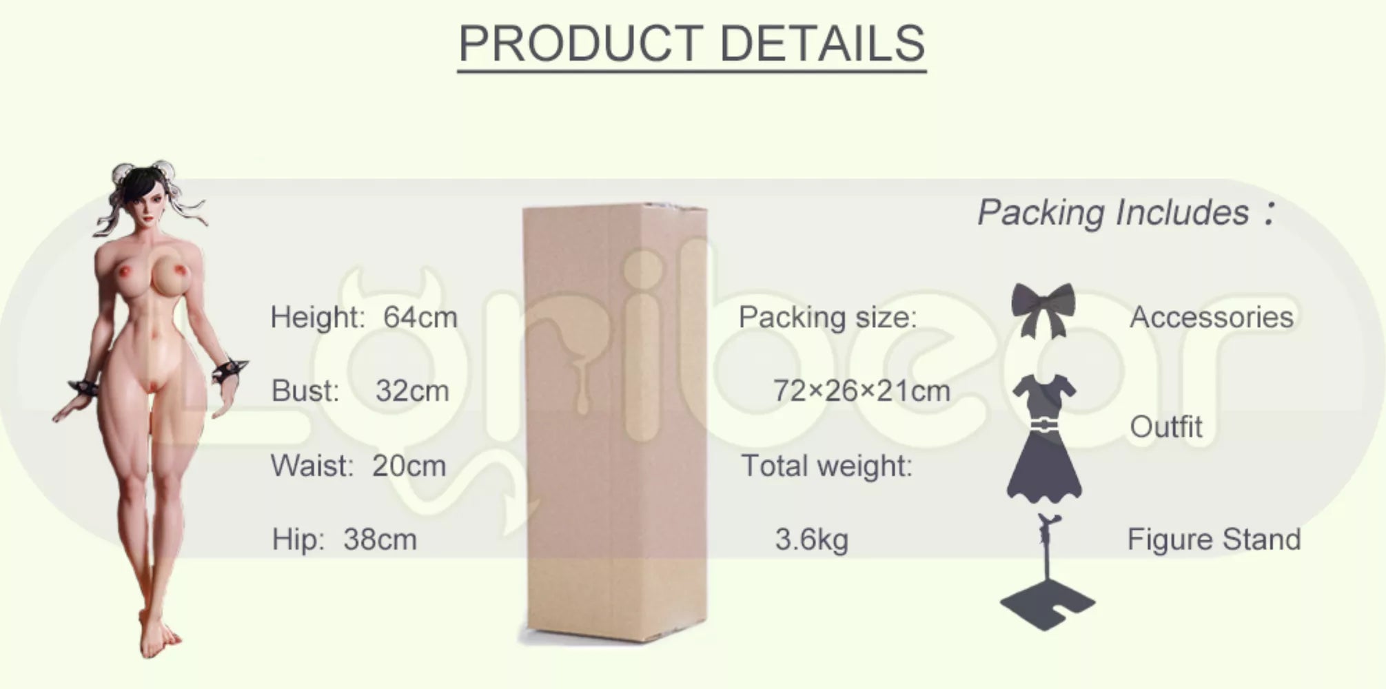 Chun Li Hentai Figure Sex Doll in Silicone - 64cm (25.2in)